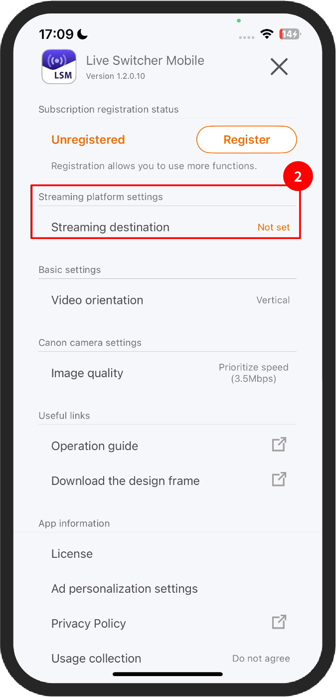 - Cuando la aplicación se mueve al fondo, la conexión con el teléfono inteligente secundario cesará. Por este motivo, recomendamos que establezca la plataforma de transmisión y comparta la URL de transmisión antes de conectar el teléfono inteligente secundario.