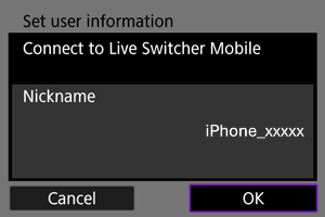 На Live Switcher Mobile з'явиться повідомлення "Connect to a camera?", тому натисніть кнопку "OK".